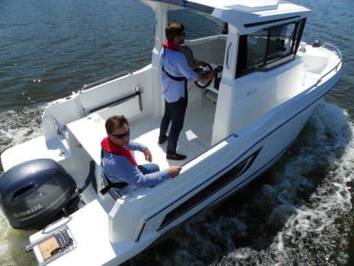 Mẫu thuyền này cũng có một sự đổi mới đáng kinh ngạc: để lái chiếc thuyền từ bên ngoài, bảng điều khiển trượt từ khoang lái ra phía sau! Đây là một khái niệm rất thực tiễn để đảm bảo điều khiển và định hướng đặc biệt khi xử lý bằng một tay.
