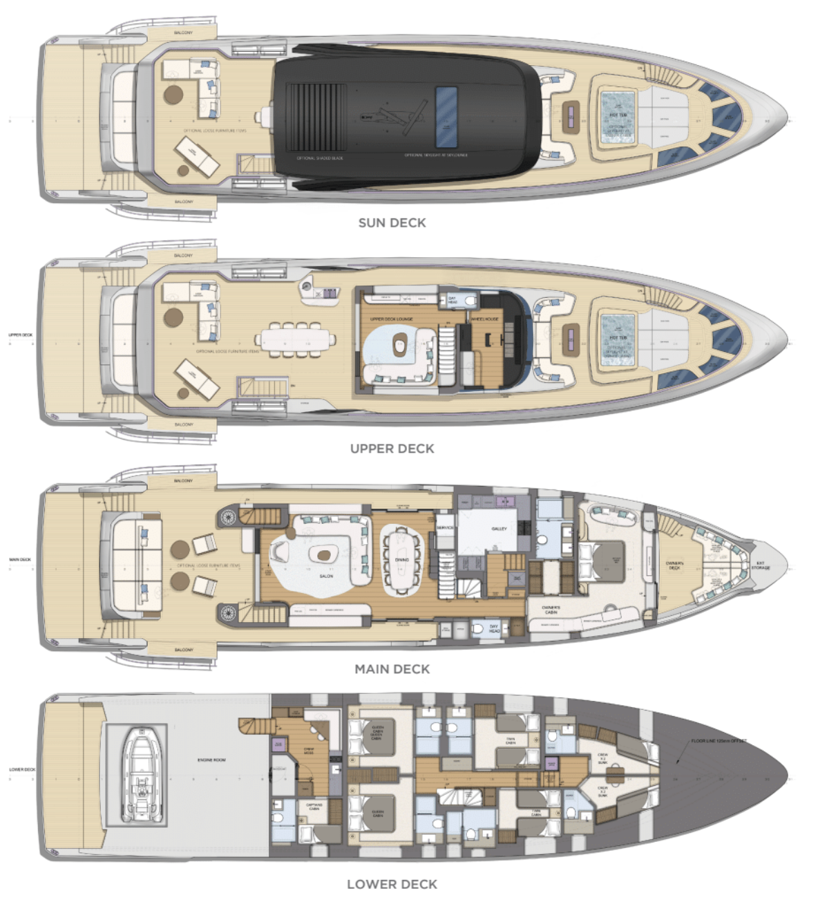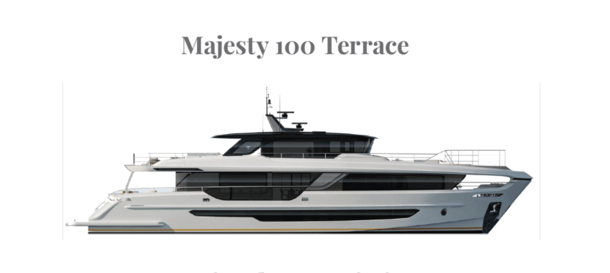 Kế thừa di sản từ một trong những biểu tượng thành công nhất lịch sử Majesty Yachts, Majesty 100 Terrace là kiệt tác của thiết kế hiện đại và kỹ nghệ chế tác tinh xảo.