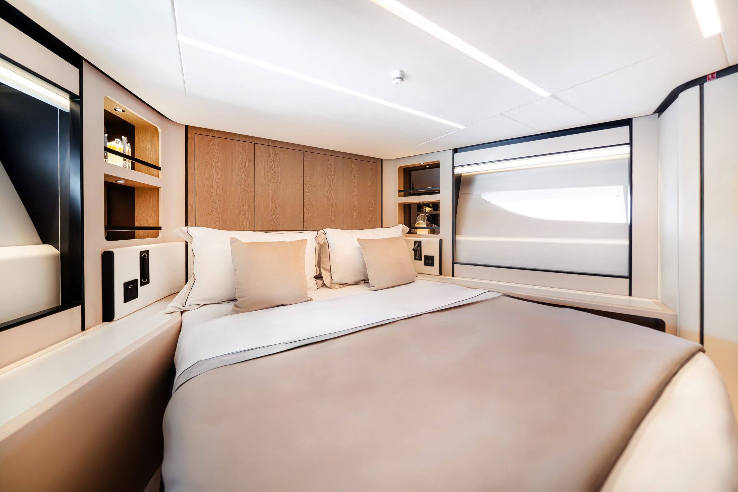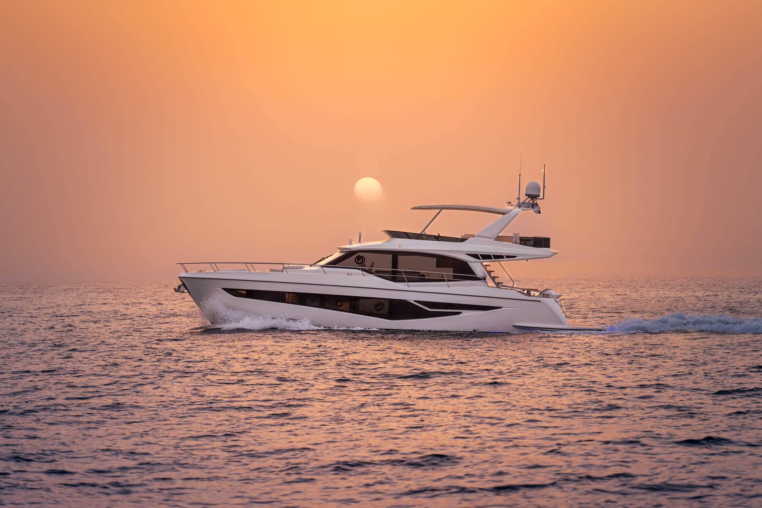 Bước lên Majesty 60 là bước vào một hành trình nơi sự thanh lịch giao hòa cùng hiệu suất.Ngay từ cái nhìn đầu tiên, Majesty 60 thu hút bằng ngoại hình sắc sảo và phần mui vươn dài đầy phong cách. Sàn bơi lớn phía sau cùng tùy chọn cửa hông giúp việc lên xuống thuyền trở nên dễ dàng và thuận tiện hơn bao giờ hết.Bên trong, không gian ngập tràn sức sống nhờ ánh sáng tự nhiên xuyên qua các khung cửa rộng. Bạn có thể tận hưởng những bữa tiệc ẩm thực ngoài trời tại khoang lái phía sau hoặc thư giãn trong salon chính tráng lệ như một cung điện thu nhỏ.Với tùy chọn bố trí 2 hoặc 3 cabin ngủ linh hoạt cùng các tính năng có thể cá nhân hóa, Majesty 60 không chỉ là một chiếc du thuyền, mà là sự khởi đầu hoàn hảo cho giấc mơ chinh phục đại dương với phong cách và sự tiện nghi vượt trội.